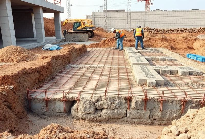 Blocks, reinforcement steel, and concrete scheduled precisely.
