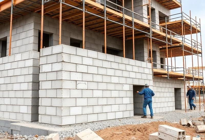 Stacked concrete blocks used for CBS construction.